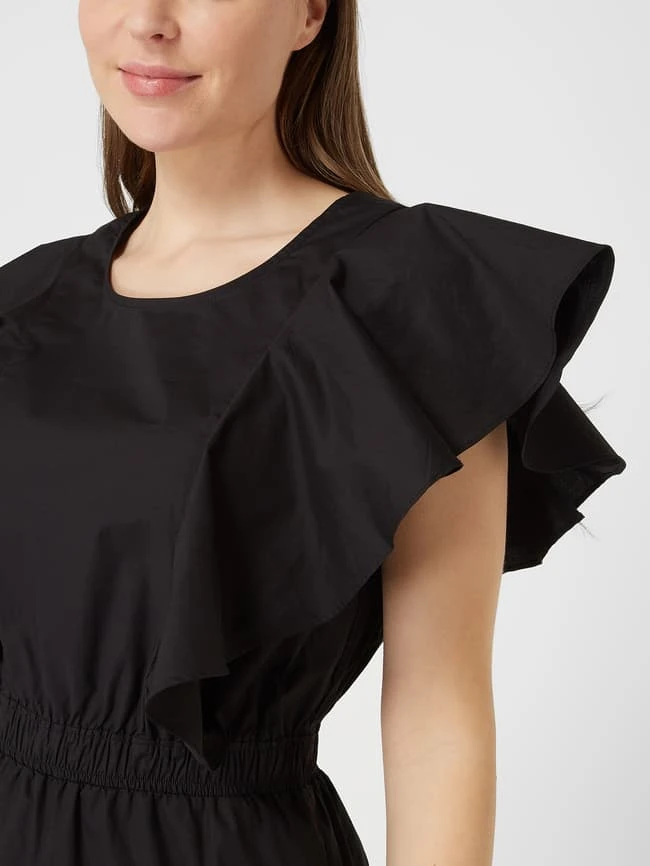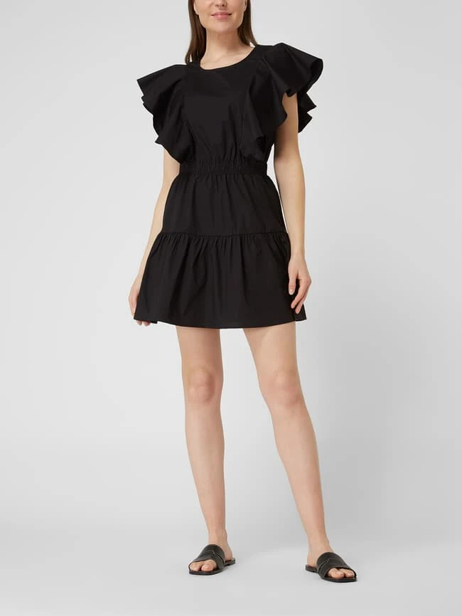 Das Minikleid von Designers Remix ist aus Bio-Baumwolle und Elasthan gefertigt. Es kommt in taillierter Passform mit kurzen Volantärmeln, Volantsaum und Schnürung auf der Rückseite.