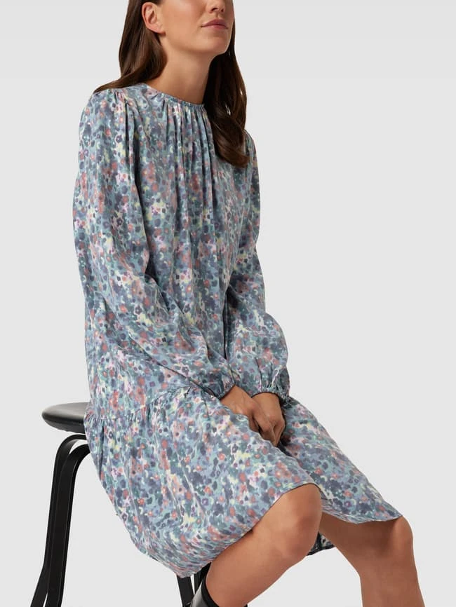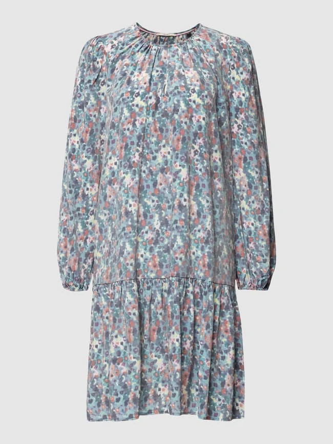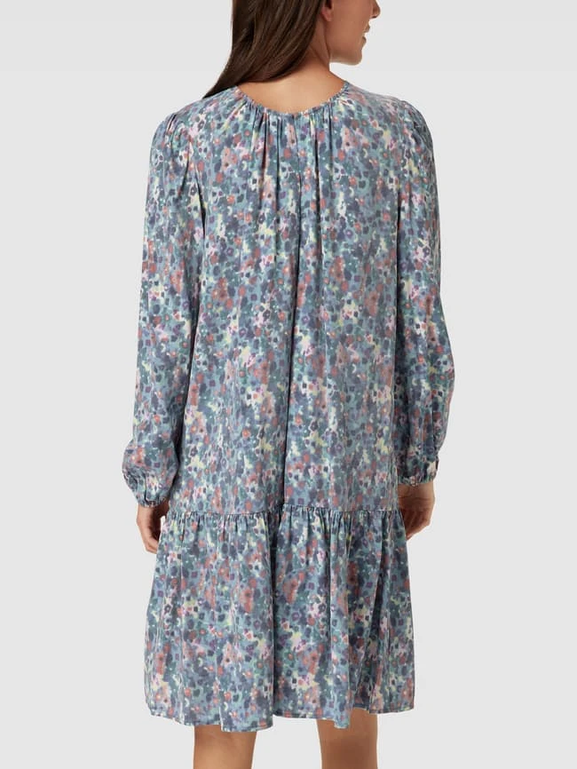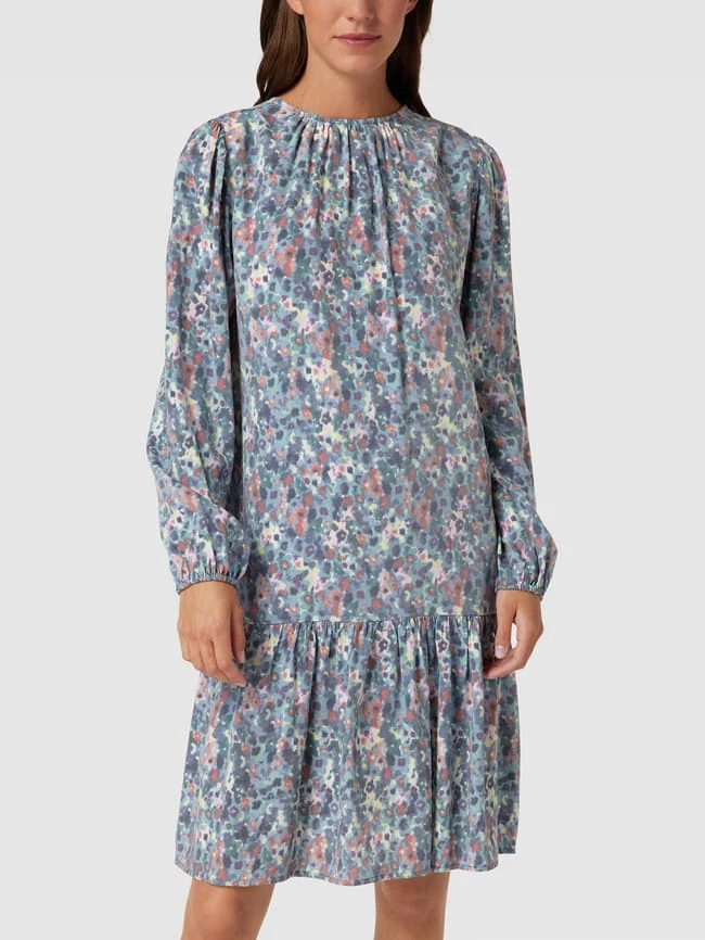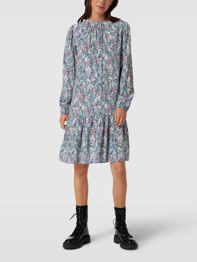 Das knielange Kleid von Esprit ist aus einem Viskose-Mix gefertigt und locker geschnitten. Es zeigt sich mit elastischem Rundhalsausschnitt und Allover-Muster.