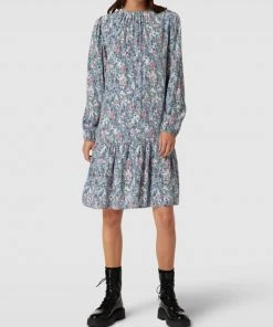 Esprit Knielanges Kleid Aus Viskose-Mix Mit Allover-Muster – Marineblau