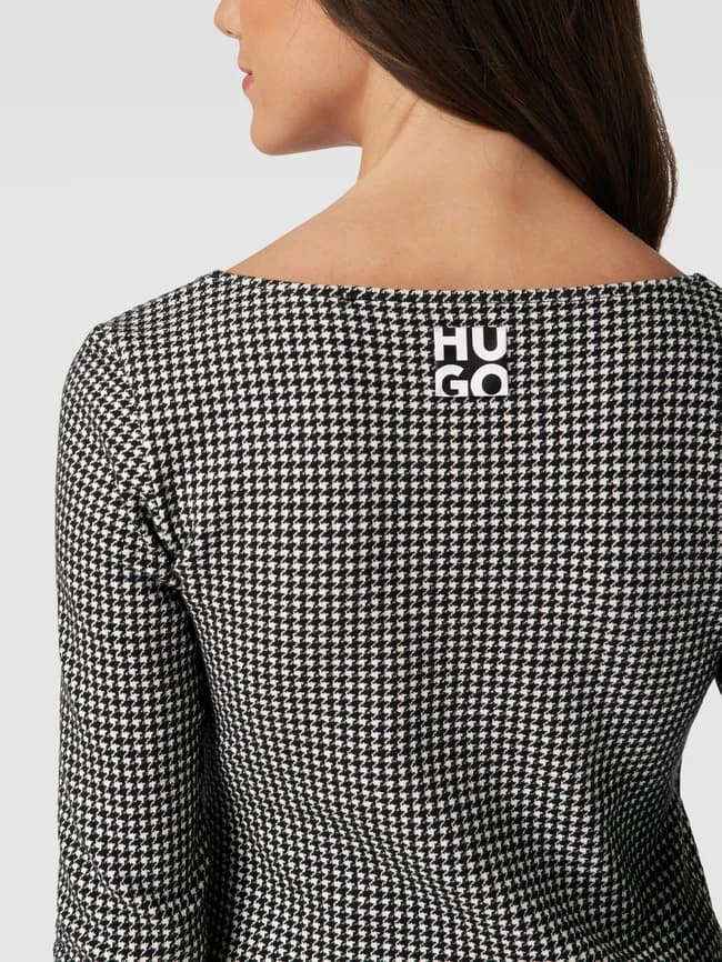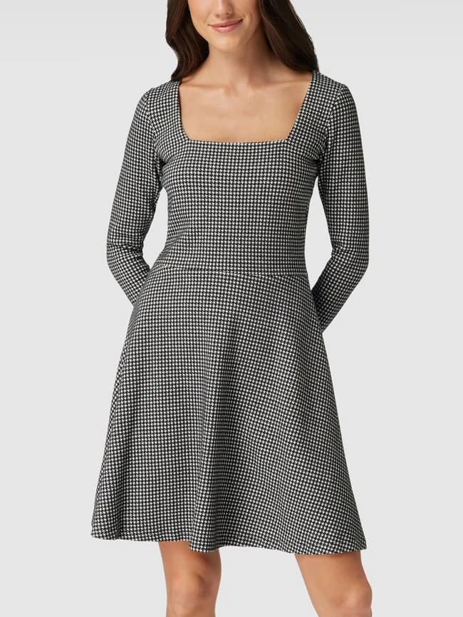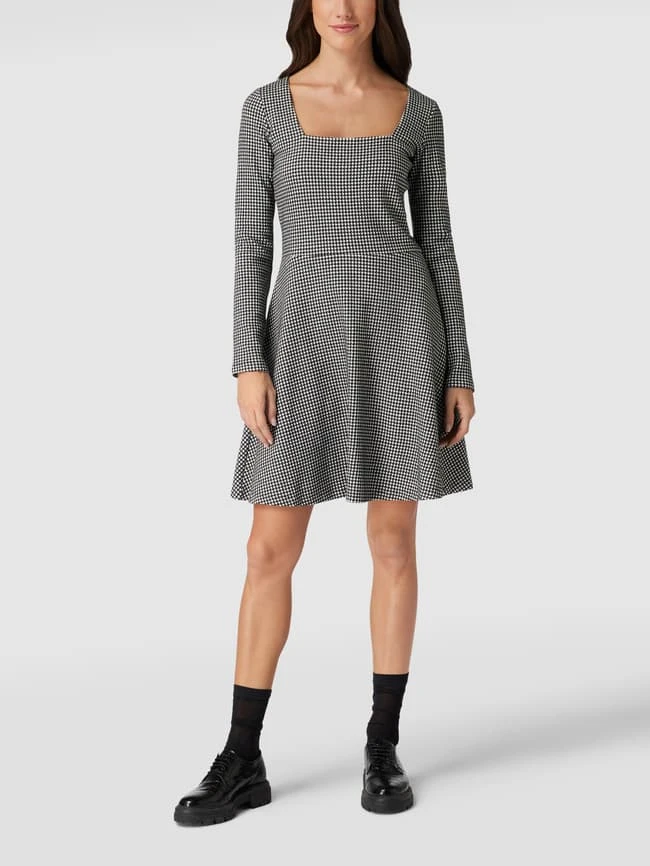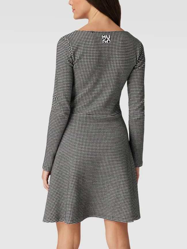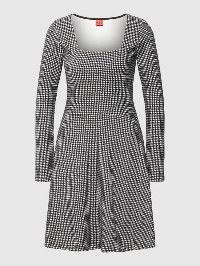 Das Minikleid von HUGO ist aus einem Baumwoll-Mix mit Stretch-Anteil gefertigt und ausgestellt geschnitten. Es kommt mit Hahnentrittmuster und Square-Neck-Ausschnitt.