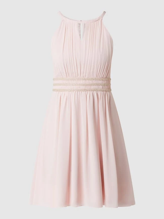 Das Cocktailkleid von Jake*s Cocktail ist aus Chiffon gefertigt und kommt in taillierter Passform. Es zeigt sich mit Cut Out, gelegten Falten und glitzernder Taillenpasse.