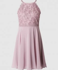 Das Cocktailkleid von Jake*s Cocktail ist aus Spitze und Chiffon gefertigt. Es zeigt sich in taillierter Passform mit amerikanischem Ausschnitt und Schlüsselloch-Ausschnitt auf der Rückseite.