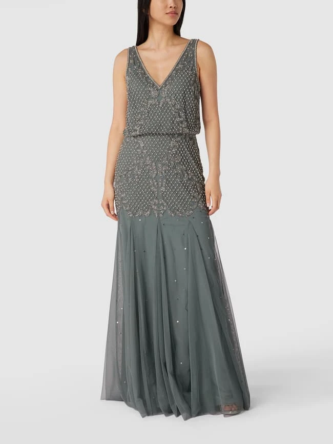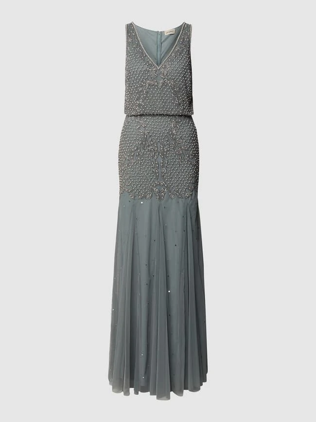 Das Abendkleid von Lace & Beads ist aus strapazierfähigem Material gefertigt und gerade geschnitten. Es kommt mit V-Ausschnitt, breiten Trägern und Muster aus Zierperlen.