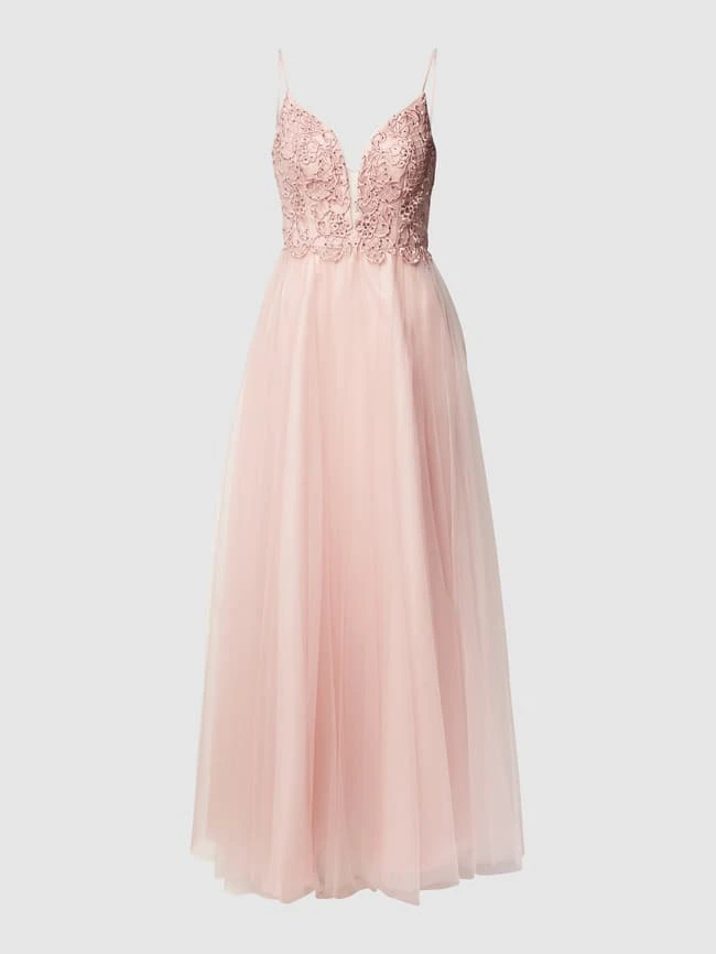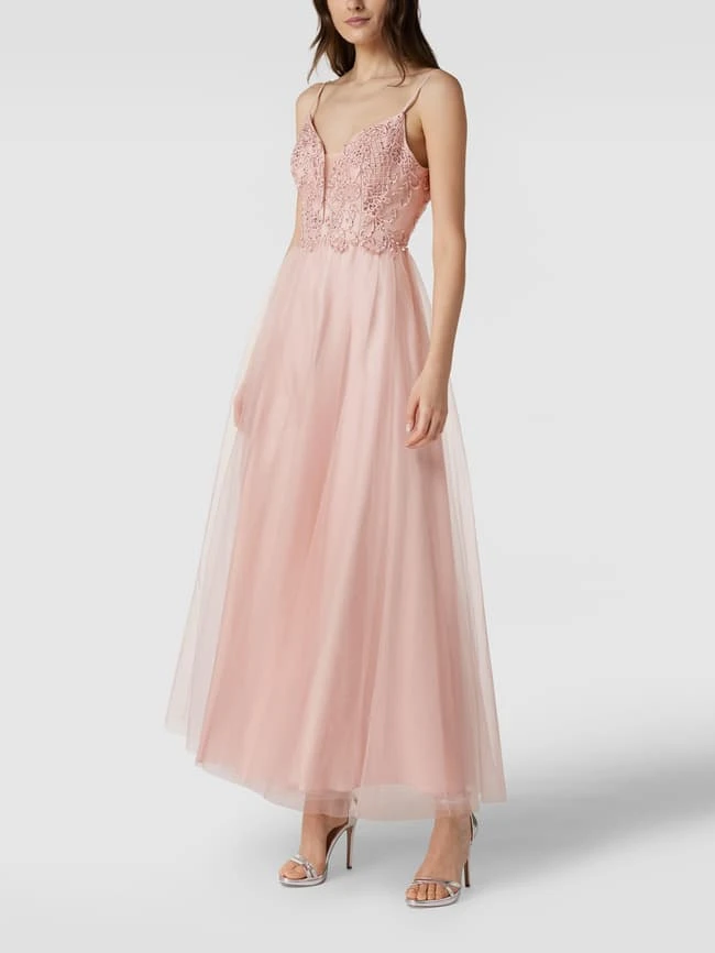 Das Abendkleid von LAONA ist aus strapazierfähigem Material gefertigt und tailliert geschnitten. Es kommt mit Spaghettiträgern, Herzausschnitt und floralen Stickereien sowie Ziersteinbesatz.