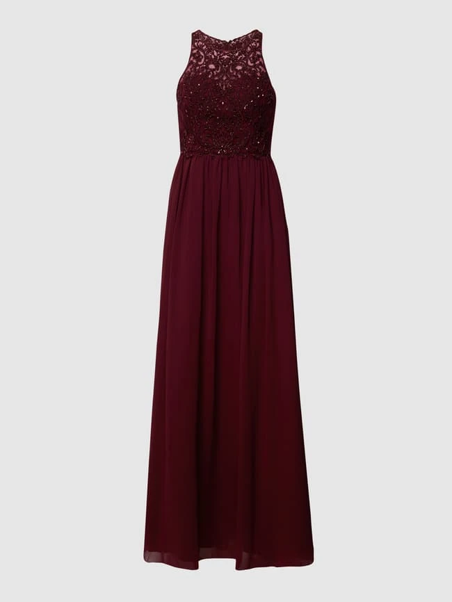 Das Abendkleid von LAONA ist aus strapazierfähigem Material gefertigt und tailliert geschnitten. Es kommt mit floralen Stickereien, Rundhalsausschnitt, Zierbesatz und Haken- und Nahtreißverschluss.