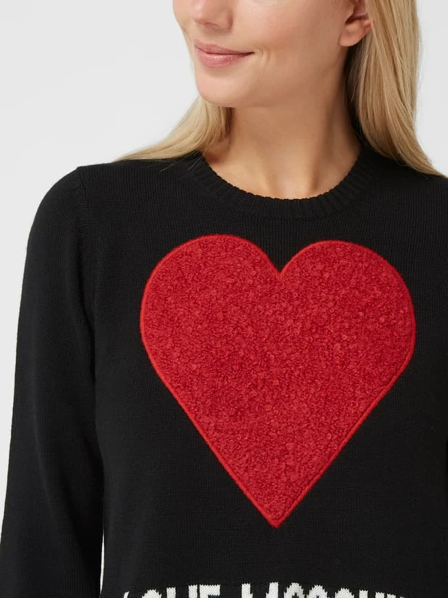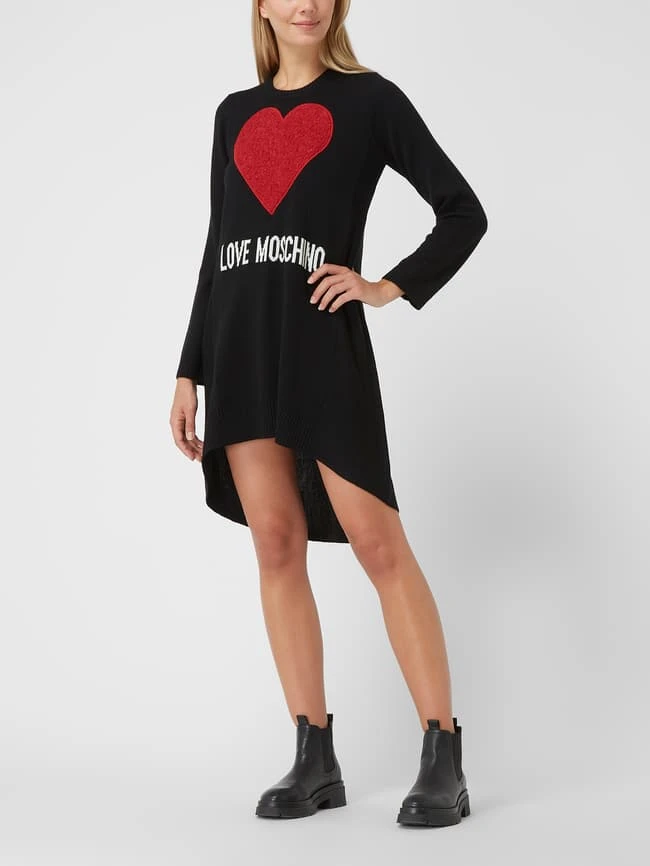 Love Moschino Strickkleid Mit Herz-Stickerei – Schwarz