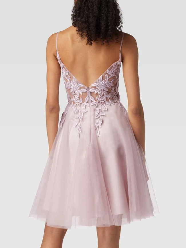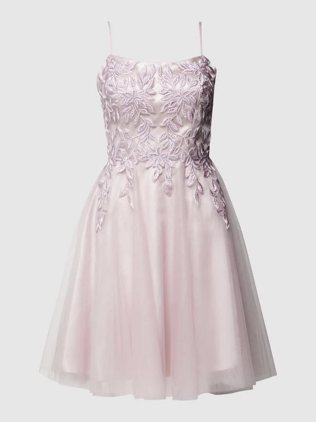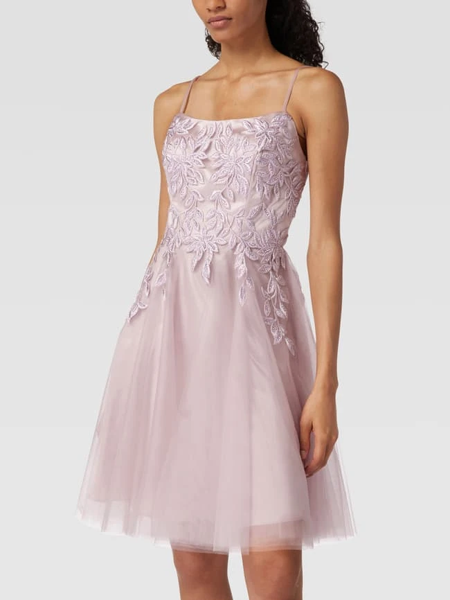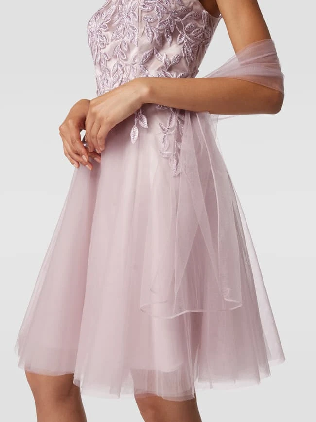 Das Cocktailkleid von LUXUAR FASHION ist aus einem strapazierfähigen Material gefertigt und tailliert geschnitten. Es zeigt sich mit Stola und floraler Stickerei mit Zierstein-Besatz.