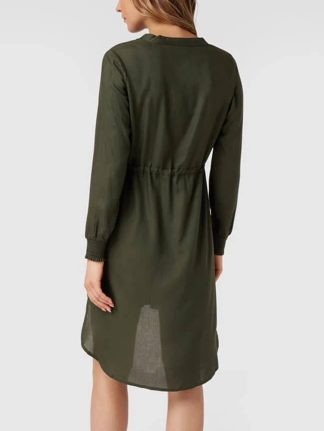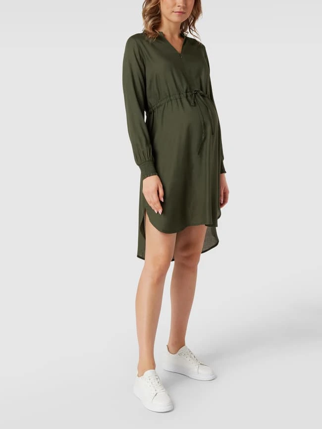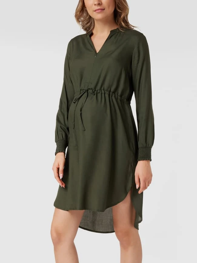 Das Still-Midikleid von Mamalicious ist aus reiner Viskose gefertigt und tailliert geschnitten. Es kommt mit V-Ausschnitt, kurzem Reißverschluss und Tunnelzug an der Taille sowie gesmokten Ärmelabschlüssen. Für eine optimale Passform eignet sich die gewohnte Konfektionsgröße.