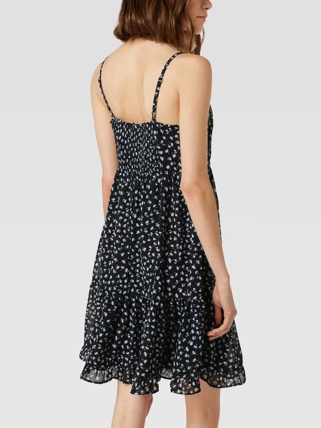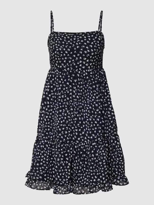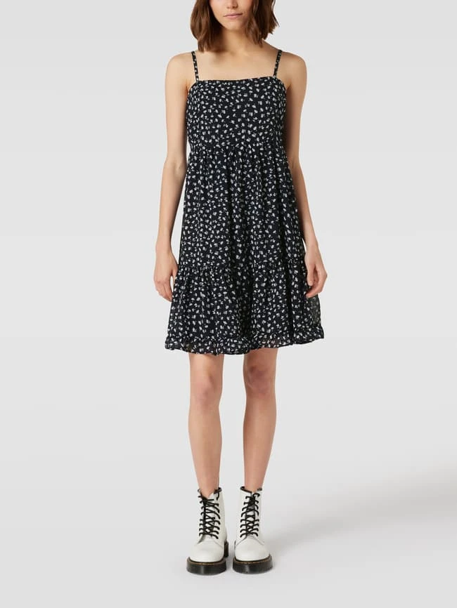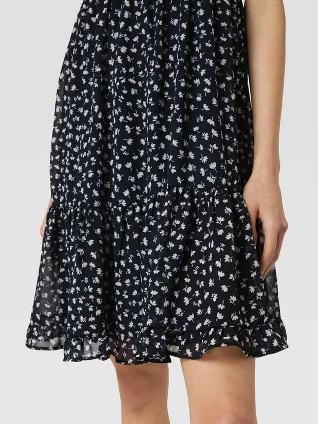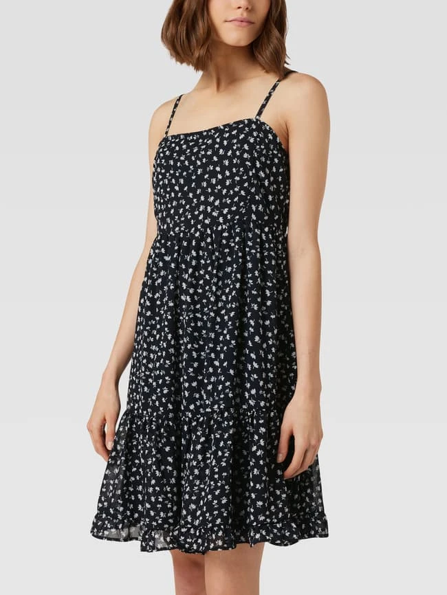 Das Minikleid von ONLY ist aus strapazierfähigem Material gefertigt und tailliert geschnitten. Es zeigt sich mit floralem Allover-Muster sowie im Stufen-Look mit Volantsaum.