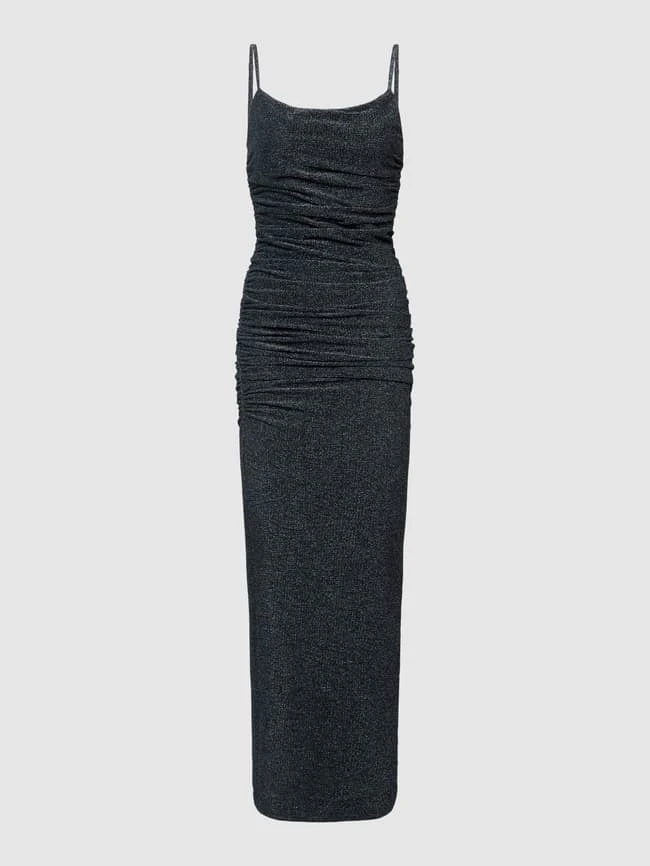 Das Abendkleid von Paradi ist aus einem Material-Mix mit Elasthan-Anteil gefertigt und körpernah geschnitten. Es zeigt sich in schimmernder Optik mit Raffungen.