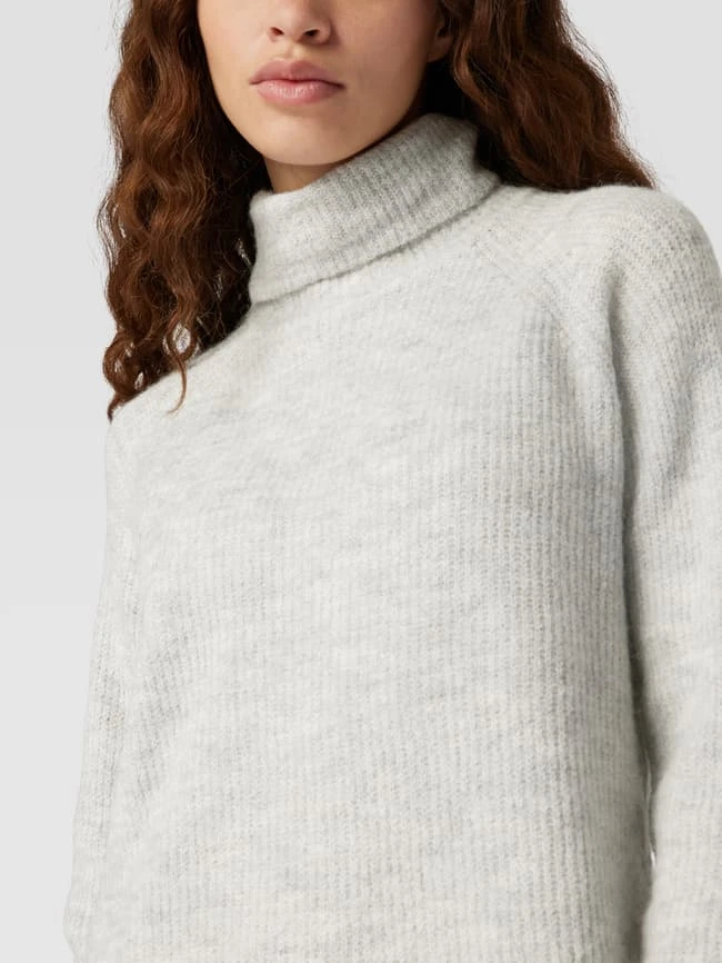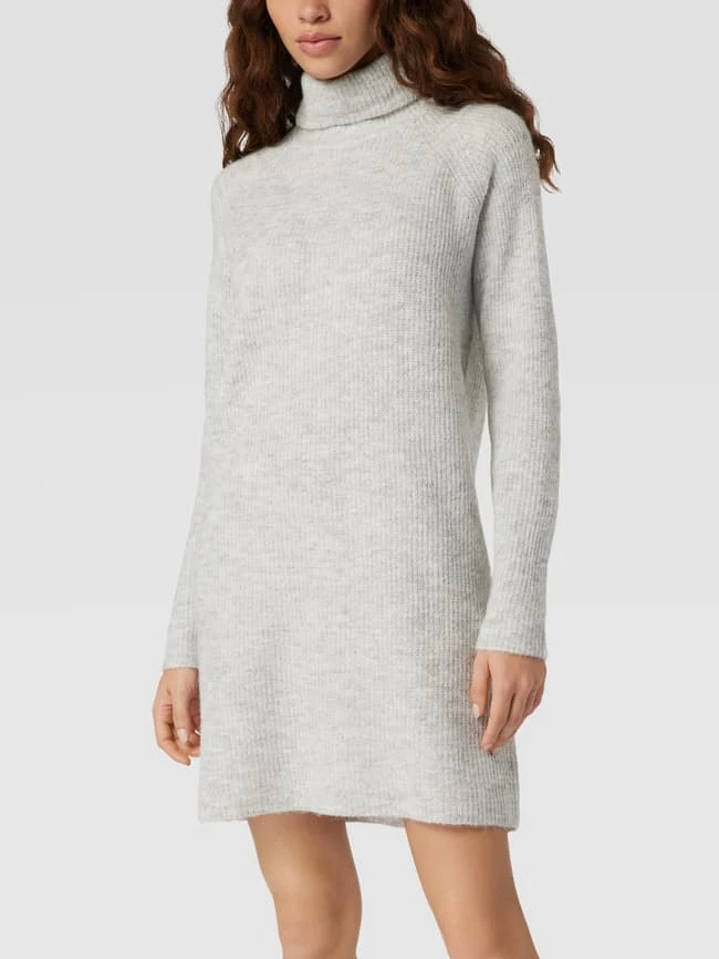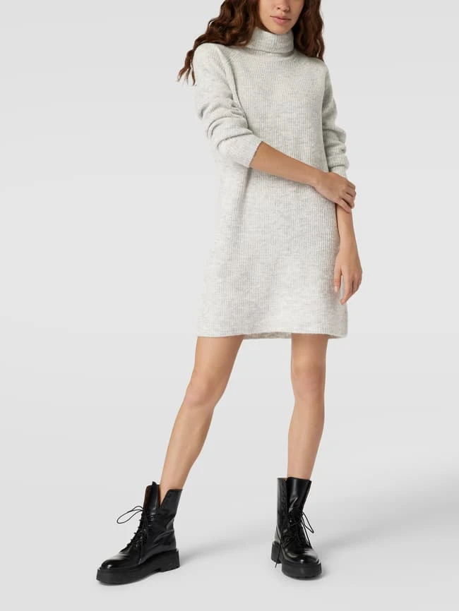 Das Minikleid von PIECES ist aus einem Material-Mix mit Woll-Anteil gefertigt und gerade geschnitten. Es zeigt sich in Strick-Optik mit Rollkragen und gerippten Abschlüssen.