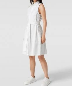 Polo Ralph Lauren Knielanges Hemblusenkleid Mit Logo-Stitching – Weiß