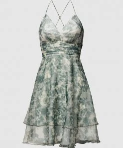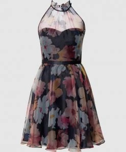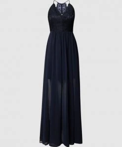 V.M. Cocktailkleid Aus Floraler Spitze Und Chiffon – Marineblau