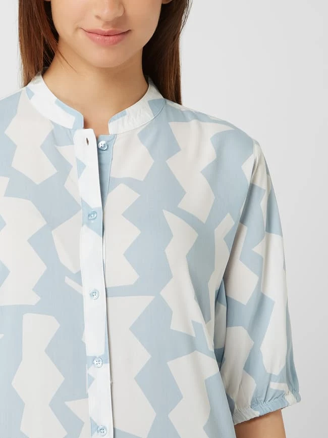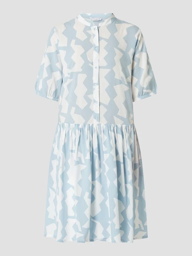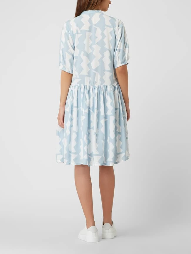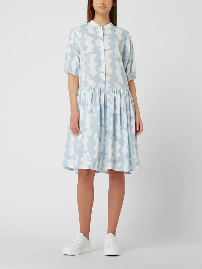 Das Kleid von re.draft ist aus reiner Viskose gefertigt und tailliert geschnitten. Es kommt mit Allover-Muster, schmalem Stehkragen und Knopfleiste am Oberteil.