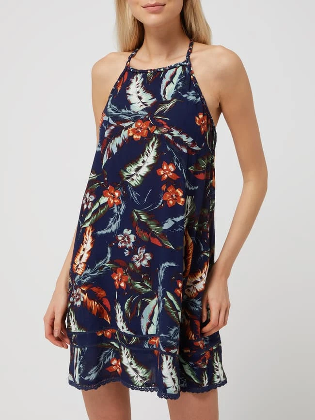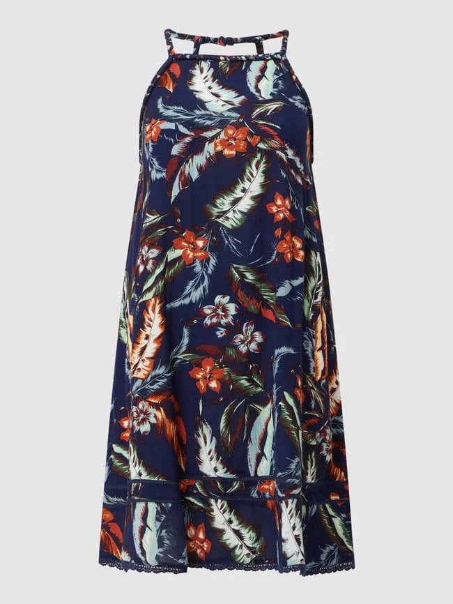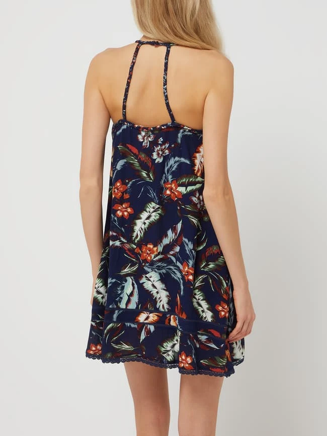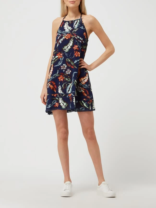 Das Kleid von Superdry ist aus reiner Viskose gefertigt und ausgestellt geschnitten. Es kommt mit Karree-Ausschnitt, Spaghettiträgern in Flecht-Optik und Kontrastsaum aus Häkelspitze.
