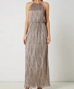 Das Abendkleid von SWING ist aus einer leichten Materialmischung mit Effektgarn gefertigt. Es zeigt sich in taillierter Passform mit Rippenstruktur, Effektgarn und amerikanischem Ausschnitt.