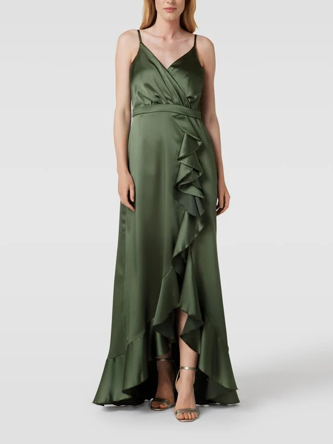 TROYDEN COLLECTION Abendkleid Mit Volants – Olivgrün