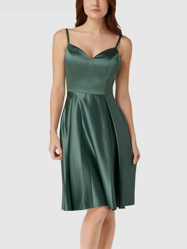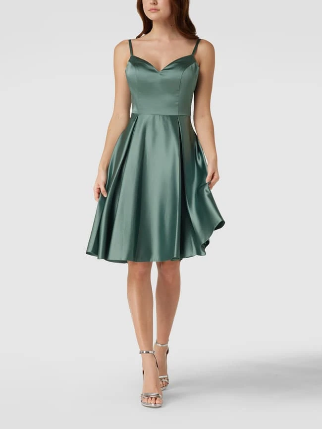 Das Cocktailkleid von TROYDEN COLLECTION ist aus strapazierfähigem Material gefertigt und tailliert geschnitten. Es kommt in Satin-Optik mit Spaghettiträgern und Herzausschnitt.
