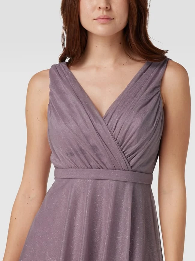 Das Cocktailkleid von TROYDEN COLLECTION ist aus strapazierfähigem Material gefertigt und tailliert geschnitten. Es zeigt sich im ärmellosen Design mit Glitzer-Effekt, Taillenpasse sowie V-Ausschnitt in Wickel-Optik.