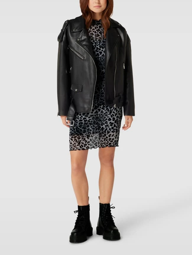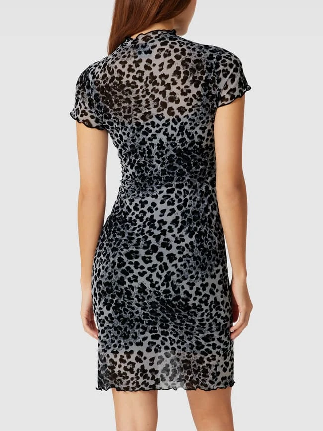 Das Blusenkleid von URBAN CLASSICS ist aus einem Viskose-Elasthan-Mix gefertigt und eng anliegend geschnitten. Es kommt mit Animal-Print und Muschelsaum.