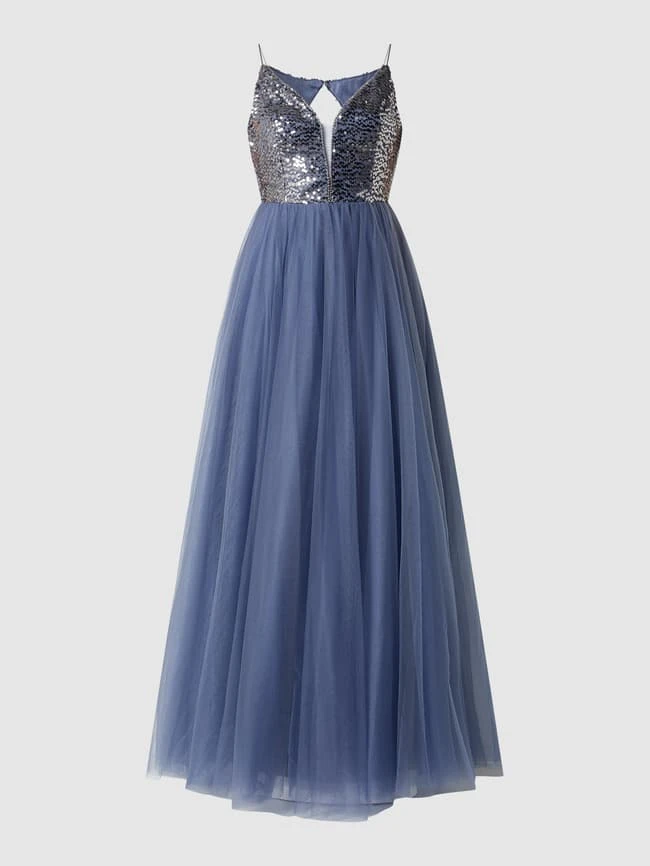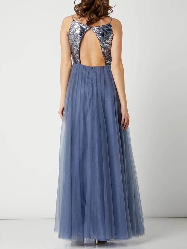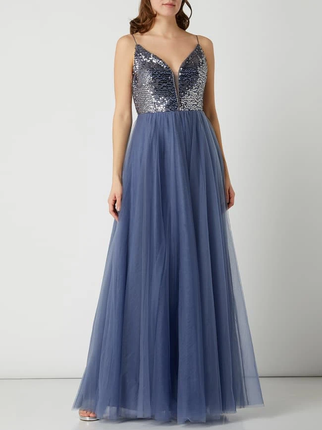 V.M. Abendkleid Aus Tüll Mit Pailletten – Blau