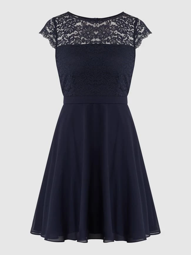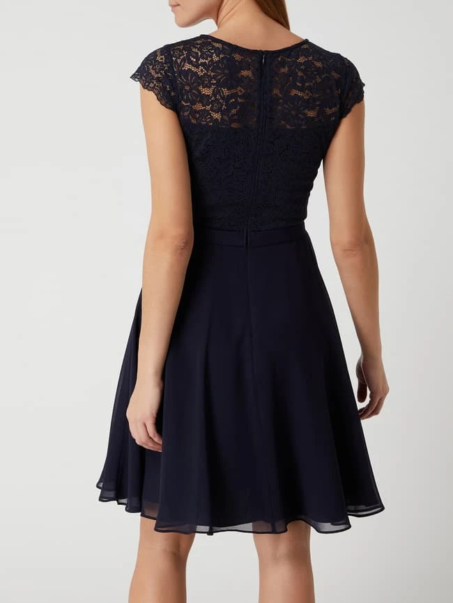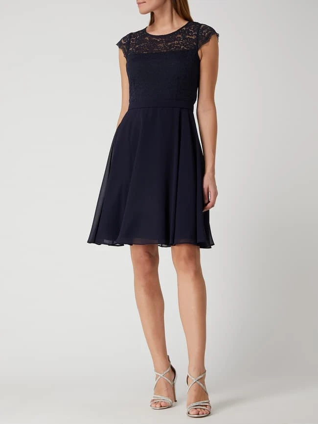 V.M. Cocktailkleid Aus Floraler Spitze Und Chiffon – Marineblau
