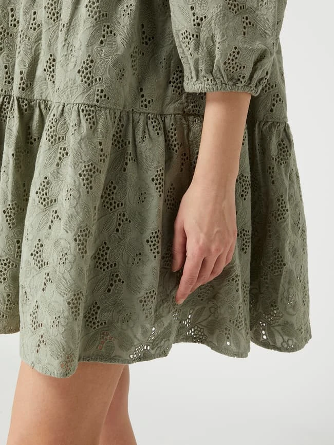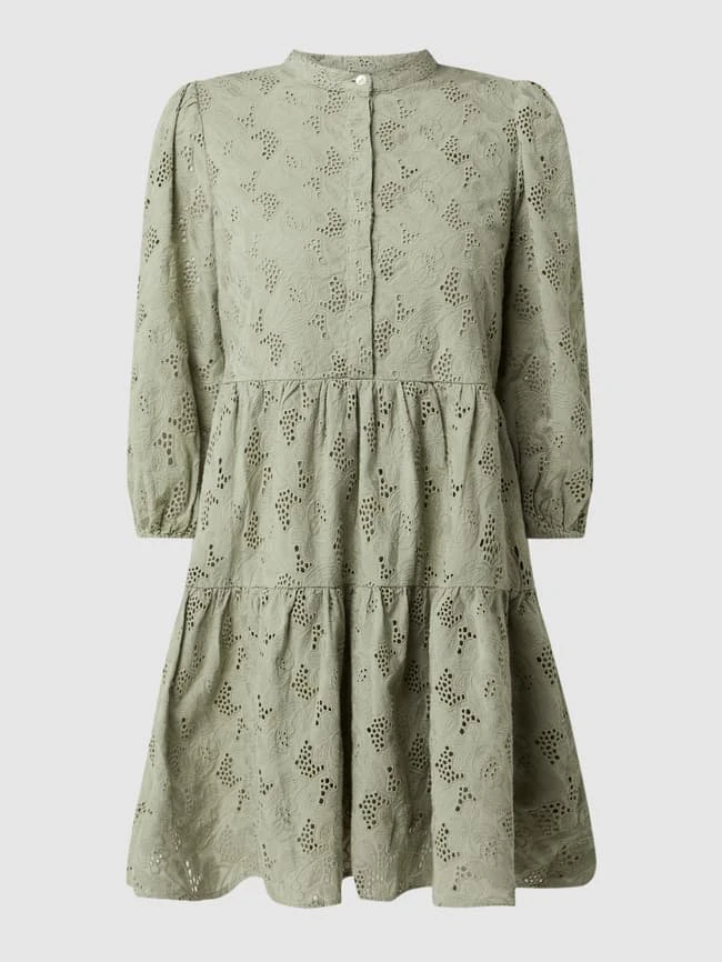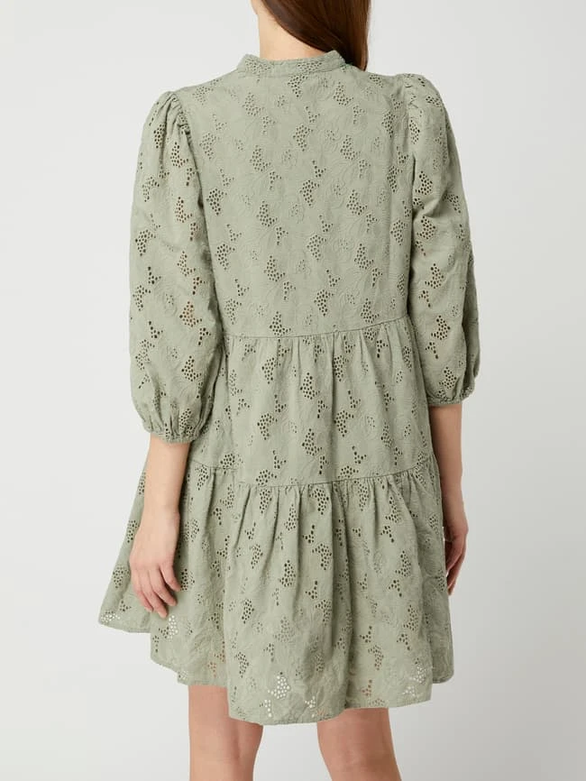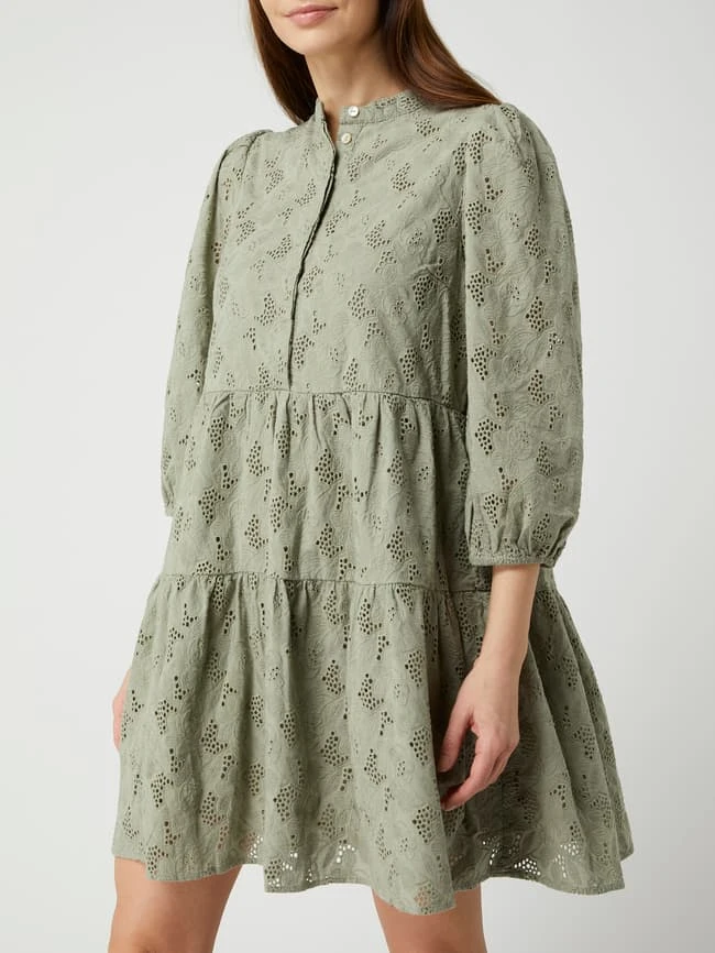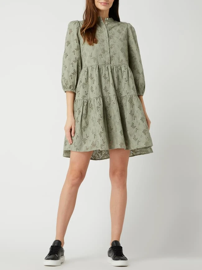 YAS Minikleid Aus Bio-Baumwolle Mit Lochstickereien Modell ‘Nadine’ – Schilf